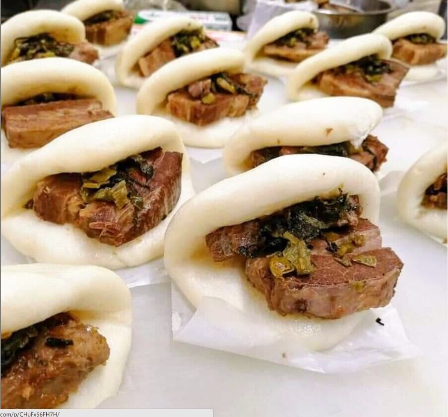 じっくり煮込んだとろける豚角煮と、中華風高菜炒めをふかふかのパンに挟みました。